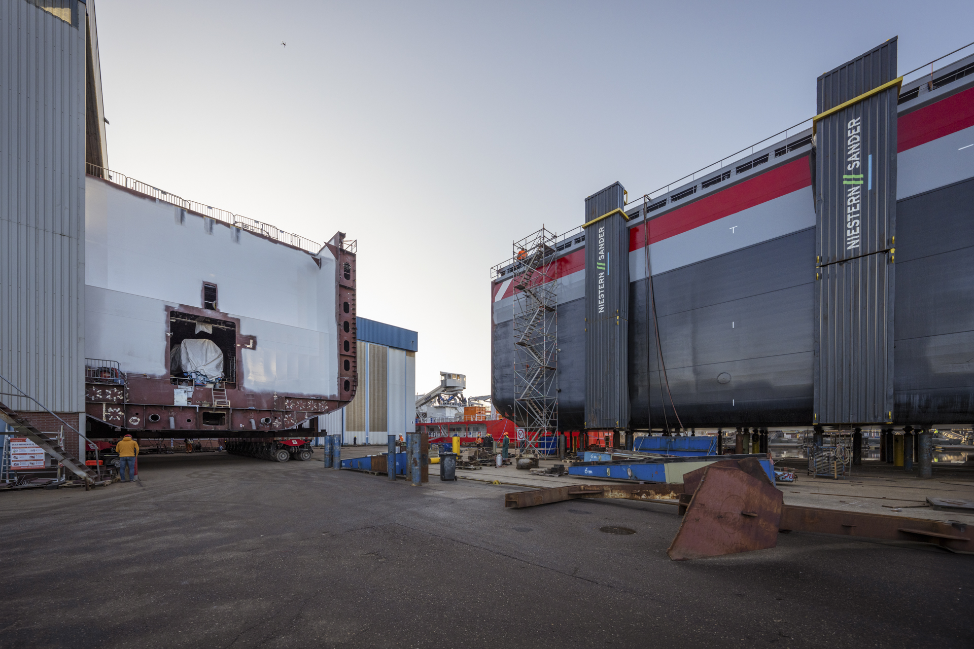 With the aft ship now in place, the next construction phases will involve integrating key components and preparing for the vessel's upcoming launch mid May. This progress brings us closer to delivering a ship that will set new standards in the maritime industry.