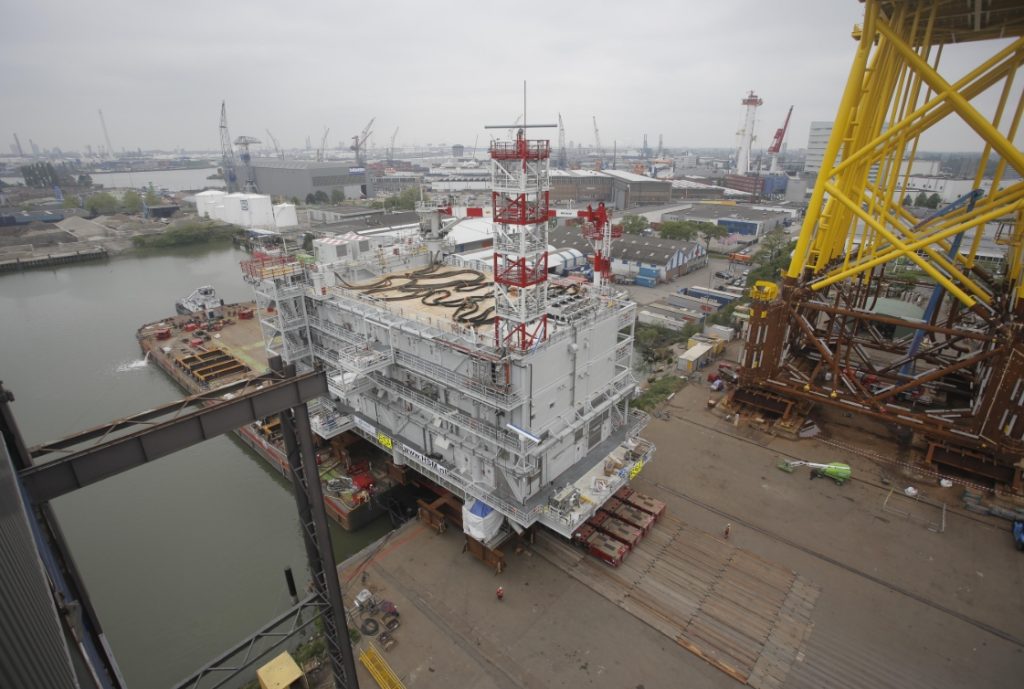 Last week HSM Offshore has loaded out the Borssele Alpha substation topside onto the Wagenborg Barge 7 by means of self-propelled modular trailers (SPMTs) at its yard in Schiedam, the Netherlands.