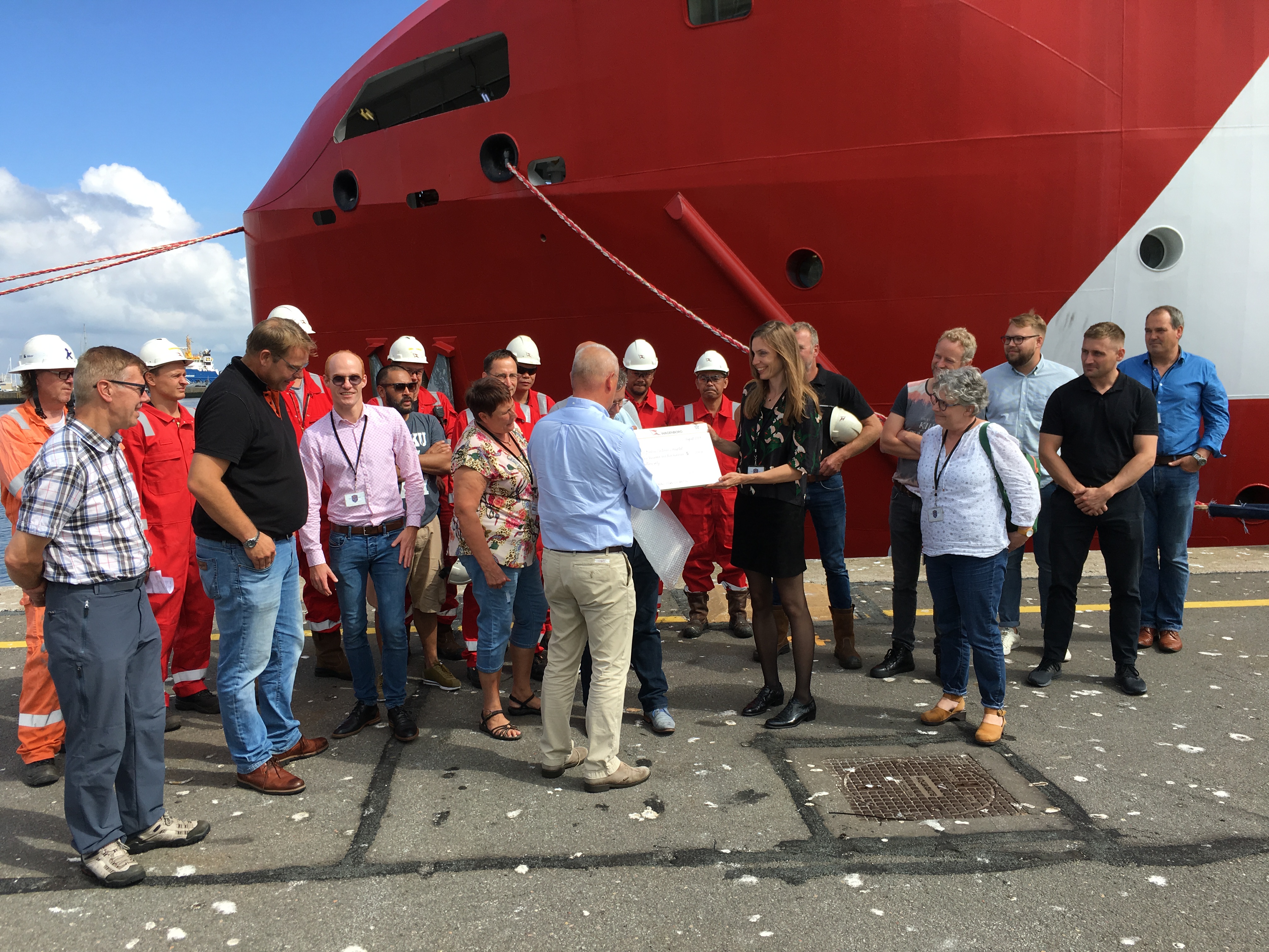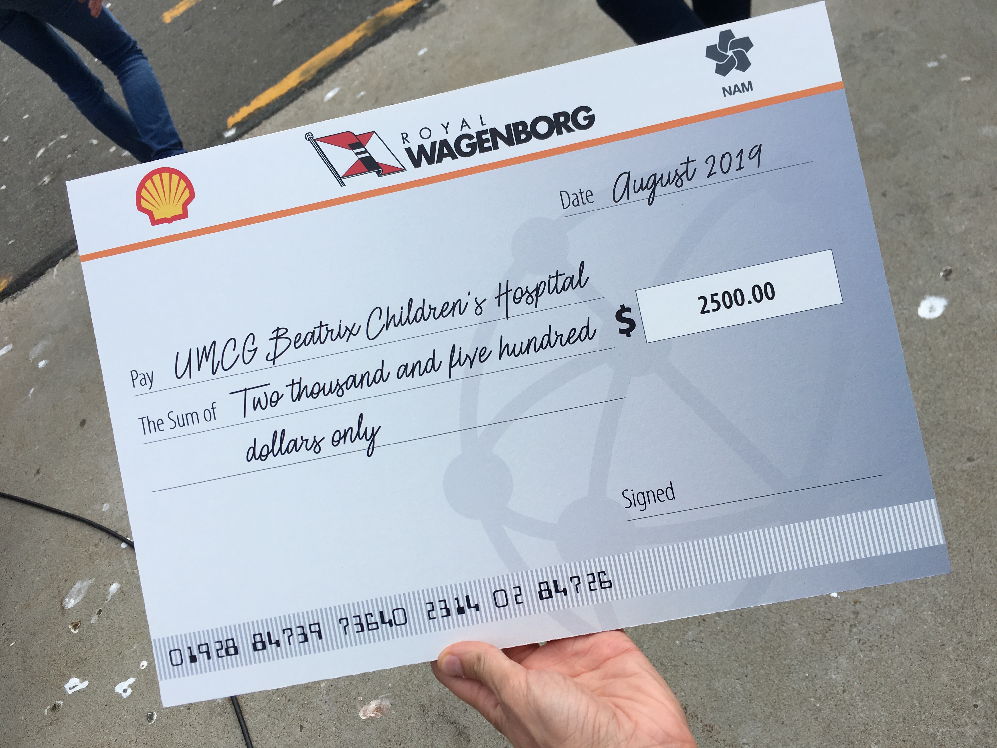 Castor Marine is the supplier of satellite communication equipment for both vessels. Due to a recent malfunction, Castor Marine wanted to compensate the crew of Wagenborg and technicians of Shell and NAM for this inconvenience. Although this gesture was greatly appreciated, it was a joint effort to donate the charity to a good cause.