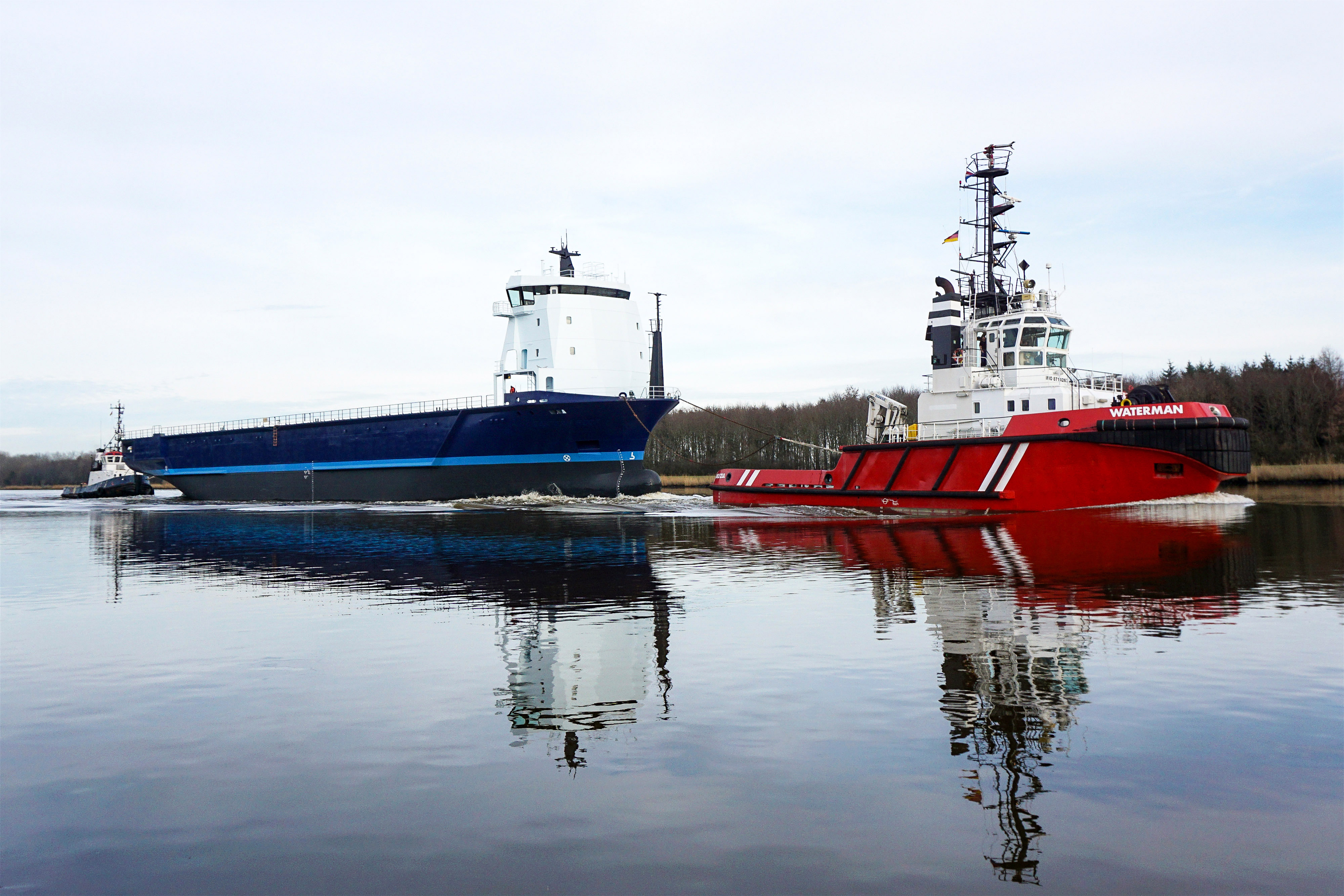 The seagoing tug Waterman has towed the hull of the Eastern Rock from the Polish port of Szczecin to the Netherlands via the Kiel Canal. Upon arrival at IJmuiden – under agency of Wagenborg - the 60 BPt tug, was assisted by the Waterstad, another Wagenborg tug.
