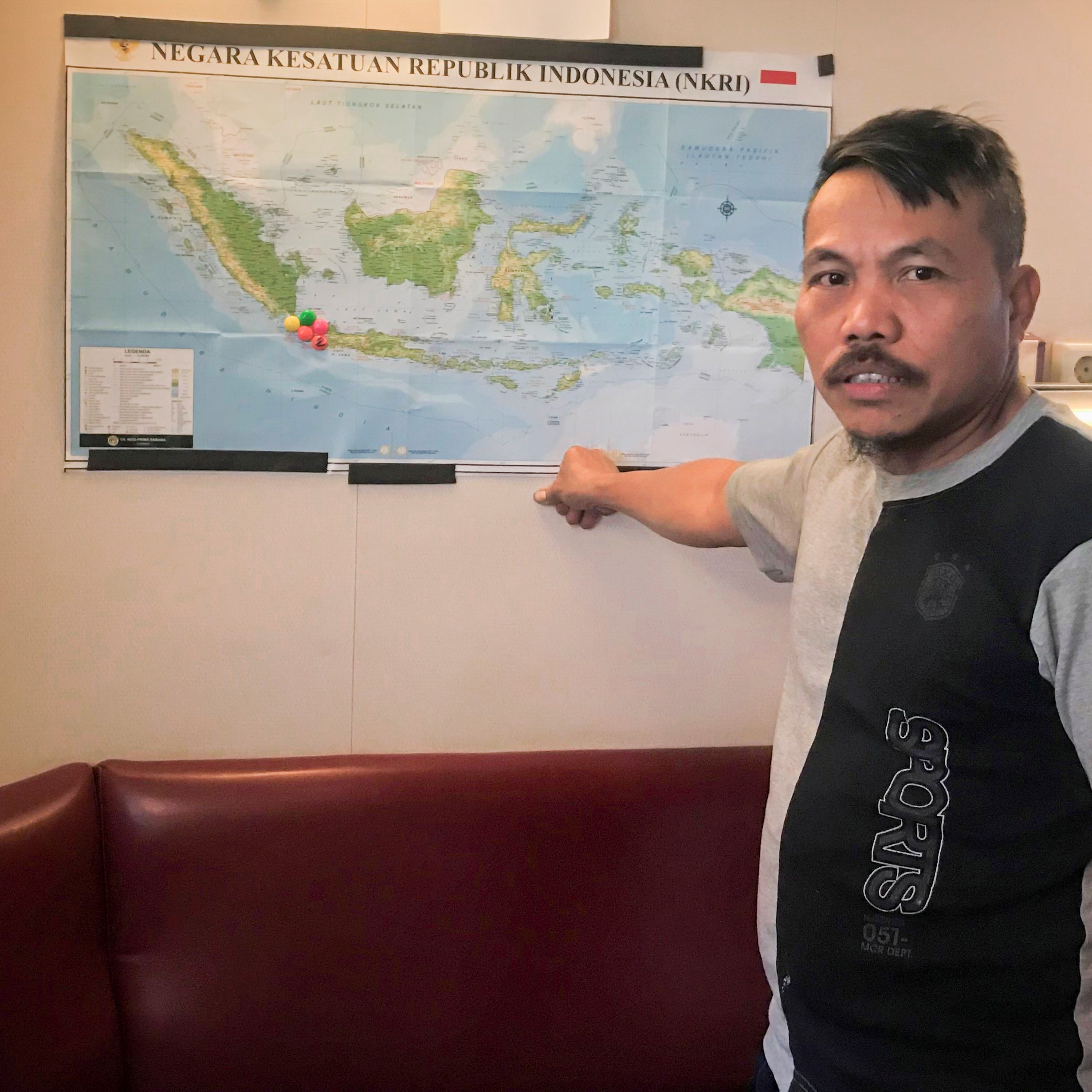 "I was a teacher at a primary school, when a friend of mine made me enthusiastic about sailing. He taught me everything he knew and on my 29th I went on board. Far away from my family. That was not easy. When I started, I was on board for ten months. The money, of course, is nice, but for me, that was too long. I am now 7 months onboard, and then I go home to my wife and four children.